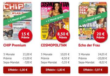 Zu jedem Abo bekommt ihr eine entsprechende Prämie und wär per Lastschrift zahlt bekommt noch einmal einen zusätzlichen Rabatt, der das Ganze nicht nur kostenlos macht sondern den Betrag für euch ins "Minus" bringt, was in diesem Fall natürlich einmal gut ist.
