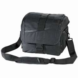 Kameratasche zum Schutz und zur Aufbewahrung von Digitalkameras mit Zubehör, Öffnung vom Körper weg mit Zweiwege-Reißverschluss, zusätzliche Deckelöffnung mit Schnellverschluss