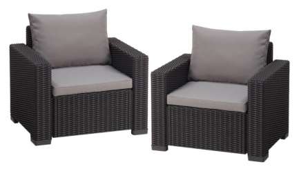 2er Set Sessel in runder naturgetreuer und offener Rattanoptik, inkl. bequemen Kissen: grau, ca. 7,5 cm Stärke, Polyester