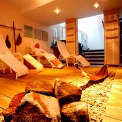 Nutzung der Sauna mit Wellness-Tee und Mineralwasser