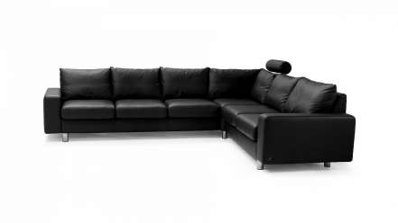E200 Ecksofa schwarz Leder Rückenlehne verstellbar B/H/T/Sitztiefe: ca. 313/73/247/46 cm