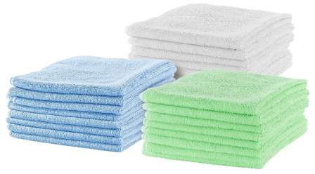 24 Mikrofasertücher in Blau, Gelb und Weiß • Besonders saugstark: absorbiert das 8-fache des Eigengewichts • Material: 85% Polyester, 15% Polyamide
